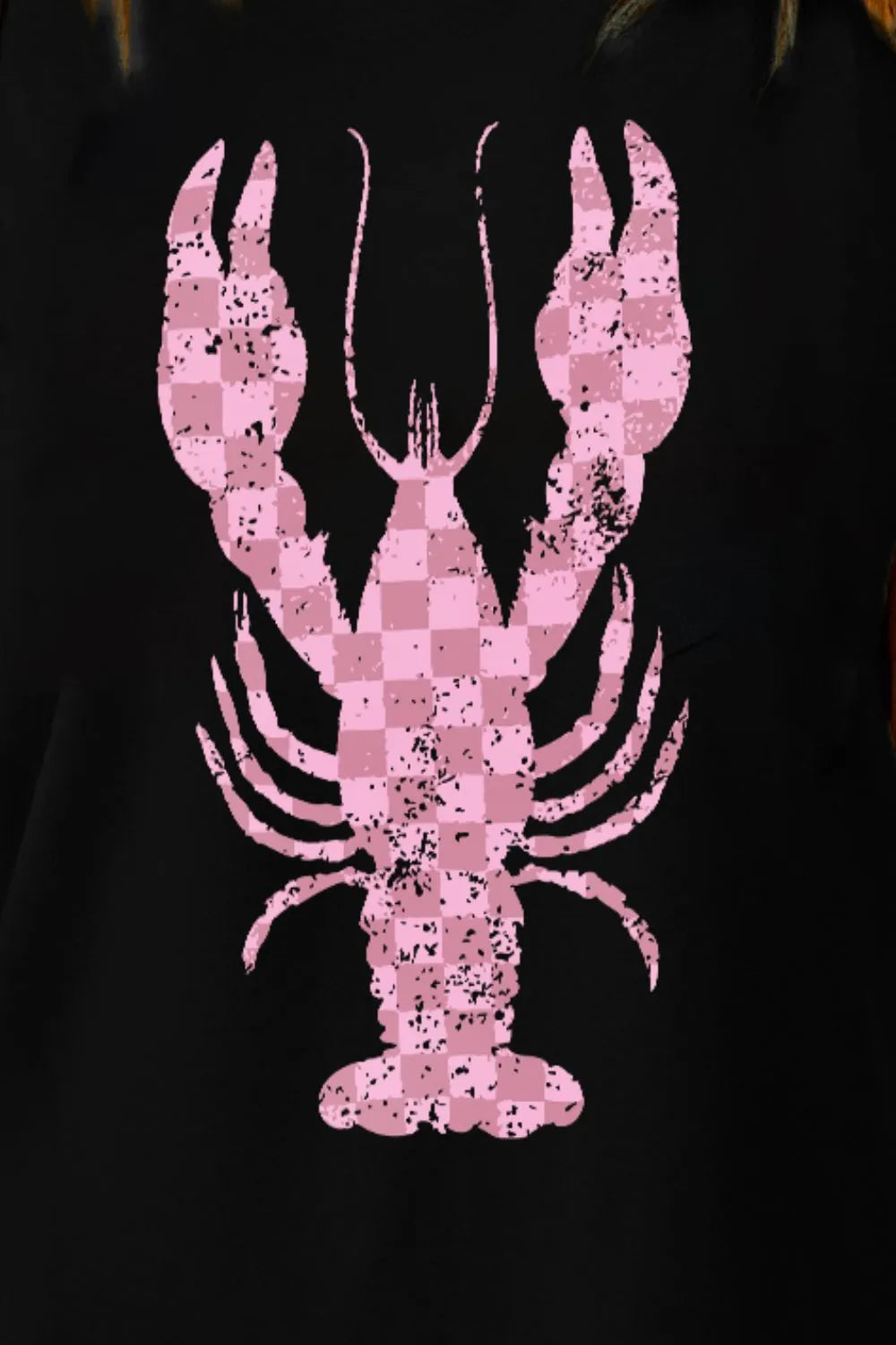 Checkered Lobster Graphic Round Neck Short Sleeve T-Shirt