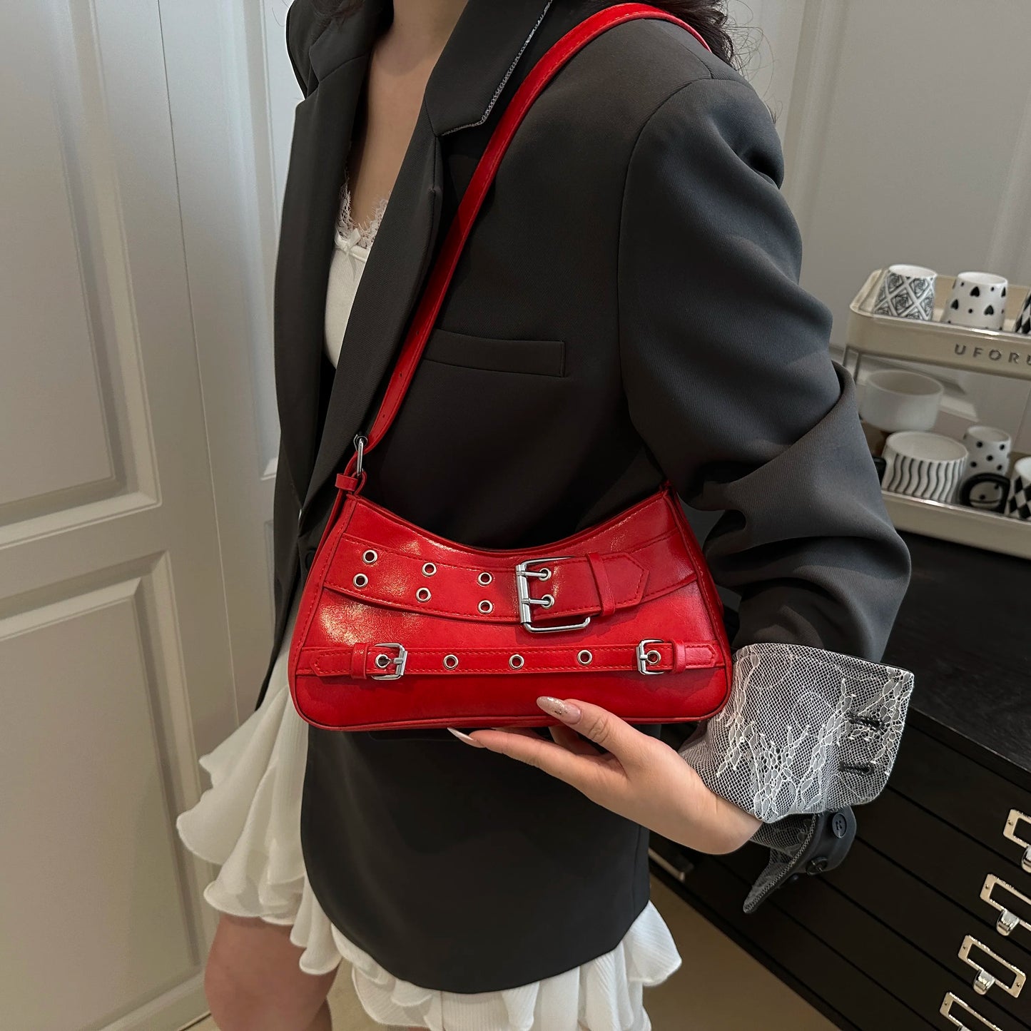 Leather Buckle Shoulder Bag