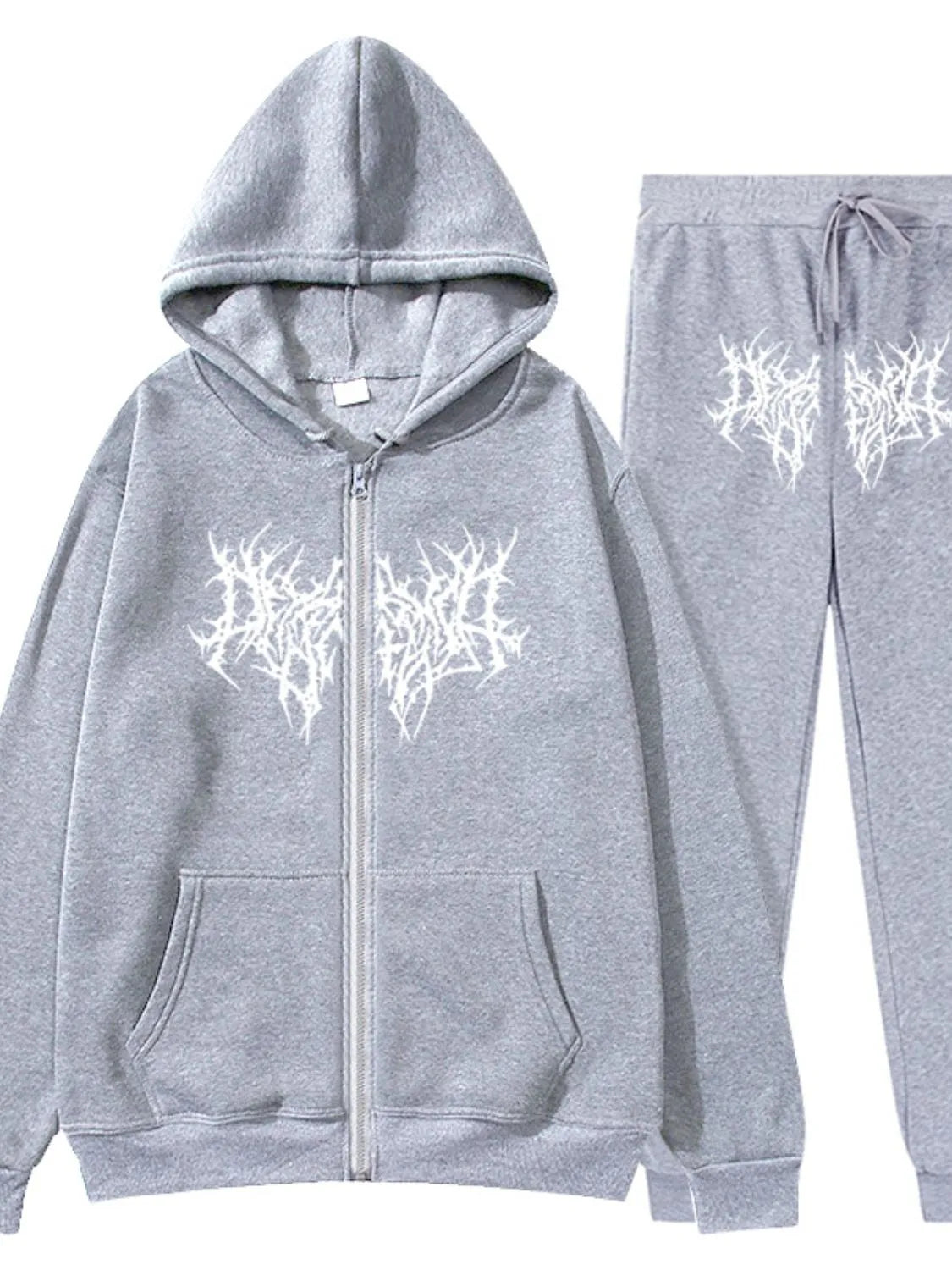 Men's Full Size Zip Up Long Sleeve Hoodie and Pants Set Plus Size