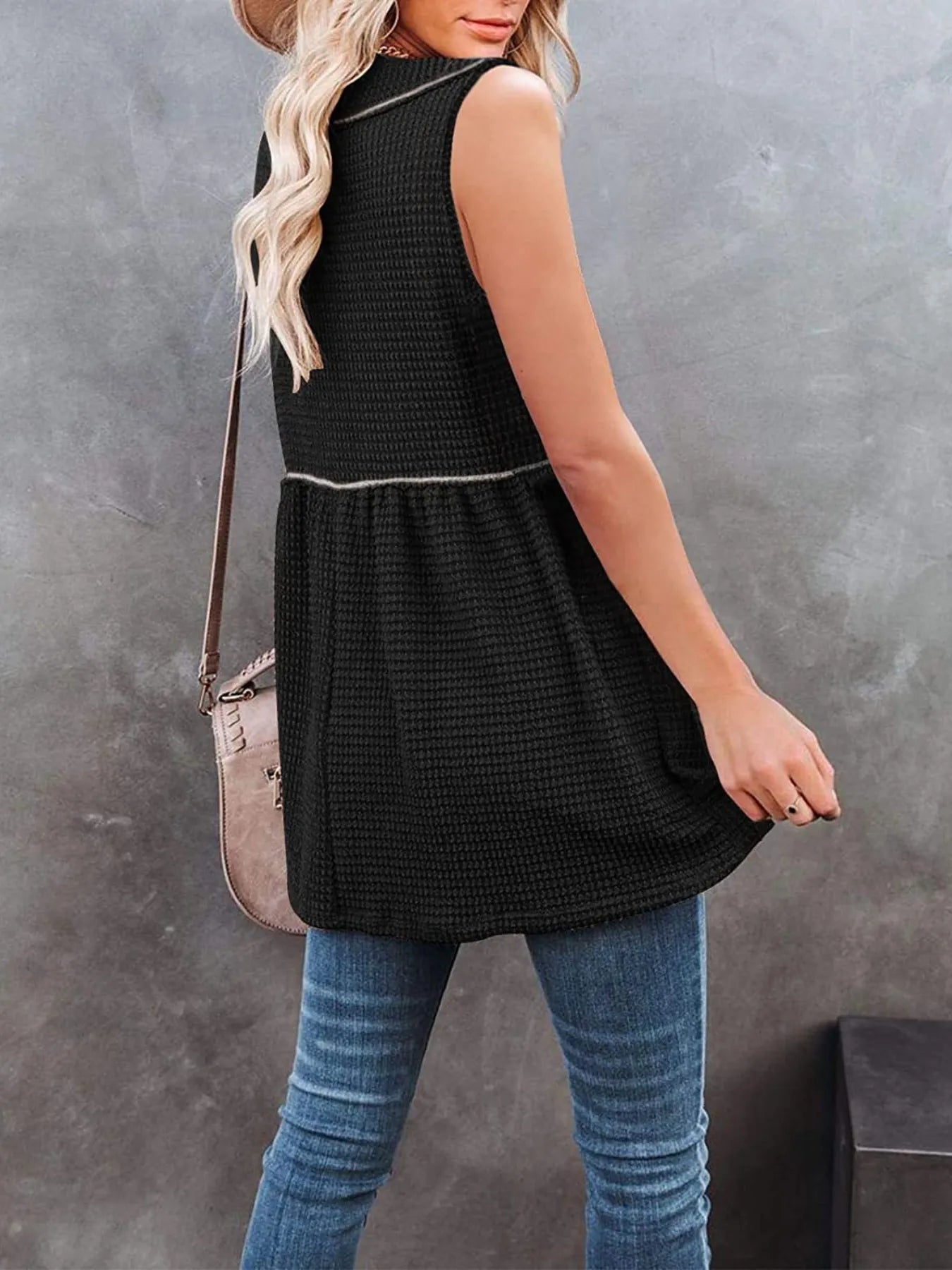 - Features:Waffle-Knit,Contrast Stitching